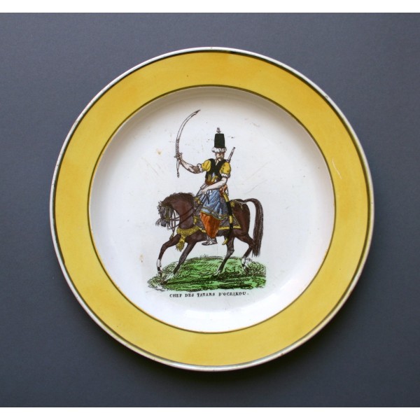 Le décor aux cavaliers français et étrangers d'époque impériale n'est pas propre à la production toulousaine, mais il prend ici un relief particulier. Les assiettes sont dotées d'une aile colorée en jaune, bleu ou vert, parfois enrichie d'une guirlande imprimée, et les gravures sont rehaussées de couleurs. On connaît aussi une série des douze apôtres et une des douze mois de l'année ainsi relevées par une polychromie claire et vive. Il s'agissait donc d'une gamme de vaisselle plus coûteuse que celle portant de simples impressions en noir.