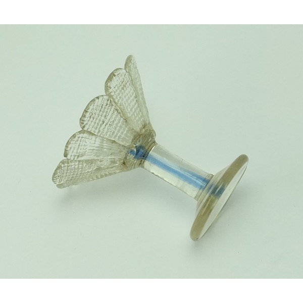 La verrerie royale d'Orléans, fondée en 1668 par Bernard Perrot, natif d'Altare en Italie et naturalisé en 1666, est à l'origine de remarquables innovations techniques dont les plus saillantes sont la redécouverte du verre rouge teinté dans la masse, le verre imitant l'agate et la porcelaine, et le coulage du cristal en table. Parmi la production attribuée à Perrot figurent des éléments de décor de table pour le dessert, statuettes, présentoirs à épices et présentoirs à fruits dits « gobichons ». Ces derniers prennent diverses formes, personnages, putti, dauphins, bustes ou sont, comme ici, de simples supports agrémentés d'un filet de verre de couleur.