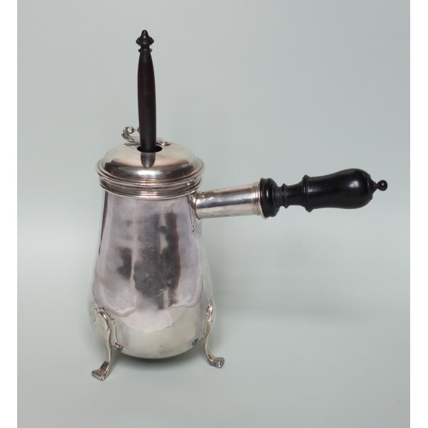 La chocolatière spécifique, avec un couvercle percé afin de passer le manche du moussoir, était un objet de grand luxe, rare et relativement peu fabriqué par les orfèvres comme on peut le constater en analysant la répartition par types d'objets des productions régionales. Son usage étant limité à la seule préparation du chocolat à l'eau, l'achat d'un telle pièce pouvait être considéré comme superflu. les amateurs de café, très nombreux en France, s'équipaient d'une cafetière qui, tout simplement, pouvait être utilisée de temps à autre pour la préparation du chocolat. Il suffisait d'ouvrir le couvercle et de plonger le moussoir dans la boisson. Il est d'ailleurs beaucoup plus commode d'agiter le moussoir ainsi plutôt qu'à travers le trou d'un couvercle de chocolatière car le bâton, en s'agitant en tous sens, heurte sans cesse les bords du trou et déstabilise l'objet.