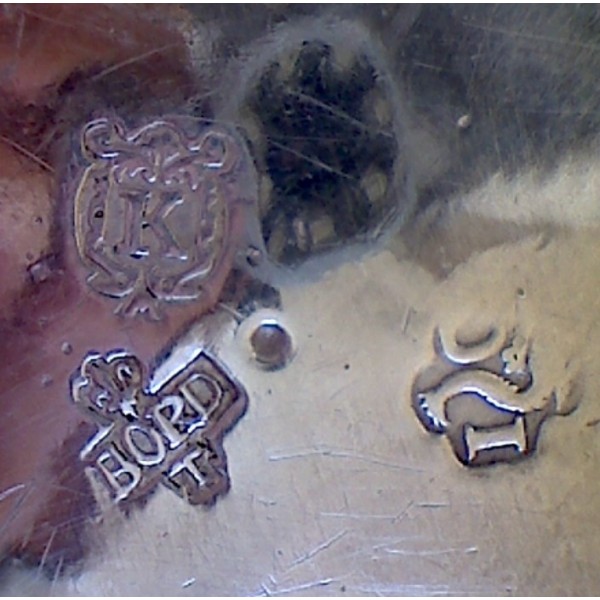 domaine : orfèvrerie matériaux/technique : argent martelé, fondu, ciselé ; bois tourné auteur : Cazaret, Jacques. Orfèvre, reçu maître le 17 mars 1695, décédé avant 1752 lieu de fabrication : France, Bordeaux chronologie : entre juin 1695 et juillet 1697 poinçons : poinçon de jurande (BORD, fleur de lys en tête, lettre T en pointe) ; poinçon de charge (lettre K dans un encadrement baroque) ; poinçon de maître (un dauphin encadré des initiales I C, premier poinçon de l'orfèvre, utilisé entre 1695 et 1717) dimensions : Ht 21,7 cm ; Lg 25,3 cm ; poids 722 gr. (sans le manche) statut : propriété du Conseil départemental de Tarn-et-Garonne inv. 2017.9.1 crédit photo : J.M. Garric ; musée des Arts de la Table/CD82