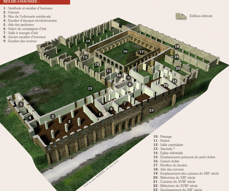 Today, there is no visible trace of the first abbey complex which was built at the end of the 12th century since; indeed, after 1230, the monks had the monastery completely rebuilt, larger and more imposing. The new buildings were based on enormous supporting walls facing the Garonne River. These audacious walls, 90m long and 11m high, are a sign of the financial investment capacity of the abbey at the height of its wealth.